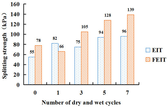 Graph of splitting strength of EIT and FEIT changing with number of dry–wet cycles.