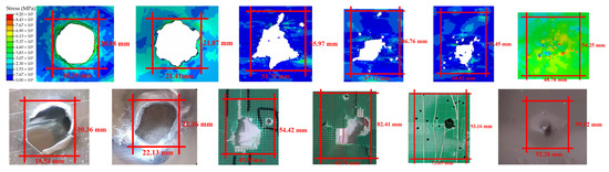 To compare the consistency between the simulation model and the test more intuitively, we carried out a quantitative analysis on the lateral, longitudinal and oblique damage ranges, as shown in Table 5.