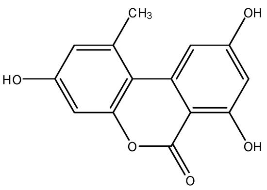 - Siegel, D.; Troyanov, S.; Noack, J.; Emmerling, F.; Nehls, I. Alternariol. Acta Crystallogr. Sect. E Struct. Rep. Online 2010, 66, o1366. [Google Scholar] [CrossRef] [PubMed]