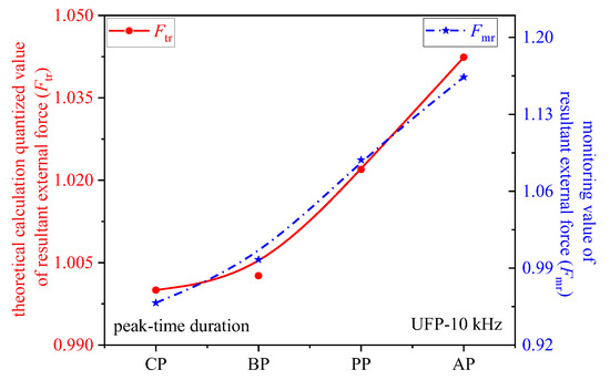On one hand, the steeper slope during the peak-time current for average acceleration was able to be captured, and the droplet mass was the product of density and volume. The volume could be obtained by spherical volume formula according to the known droplet diameter value. Afterwards, monitoring value of resultant external force (Fmr) was able to be gained according to Newton’s second law. On the other hand, Fp was the dominant driving force for the droplet, which could be seen as the theoretical calculation value of resultant external force (Ftr). Comparing Fmr with Ftr, as shown in Figure 3, although two completely different methods were used for the calculation, it was remarkable that the theoretical value matched monitoring value pretty well, which proved the credibility of the results and the accuracy of the algorithm. As for the monitoring value Fmr, compared with CP mode, because there’s no UFP in the peak-time duration of BP mode, BP had little change. However, there’s UFP in the peak-time duration of PP and AP, which brought greater plasma jet force, causing the Fmr in PP and AP modes had increases of 13.58% and 21.44%, respectively.