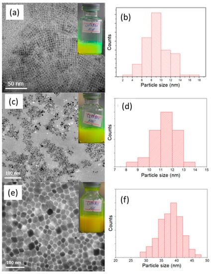- Kim, Y.; Yassitepe, E.; Voznyy, O.; Comin, R.; Walters, G.; Gong, X.; Kanjanaboos, P.; Nogueira, A.F.; Sargent, E.H. Efficient Luminescence from Perovskite Quantum Dot Solids. ACS Appl. Mater. Interfaces 2015, 7, 25007–25013. [Google Scholar] [CrossRef]