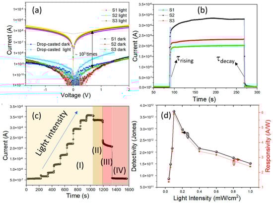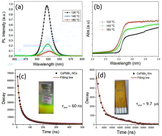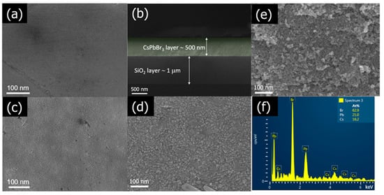 - Yang, Z.; Wang, M.; Li, J.; Dou, J.; Qiu, H.; Shao, J. Spray-Coated CsPbBr3 Quantum Dot Films for Perovskite Photodiodes. ACS Appl. Mater. Interfaces 2018, 10, 26387–26395. [Google Scholar] [CrossRef]