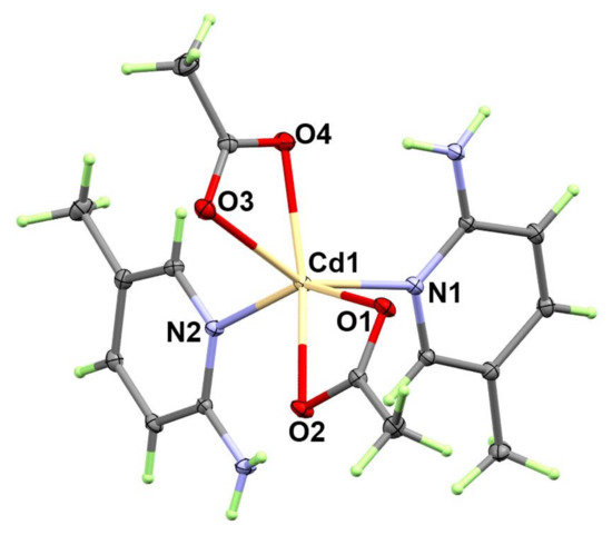 3.1.3. Structure of [Cd(OAc)2(2Ampic)2]; 3