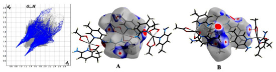 The Crystal Explorer Ver. 3.1 [76] program was used to construct the Hirshfeld surfaces and determine the 2D fingerprint plot for the studied complexes [77,78].