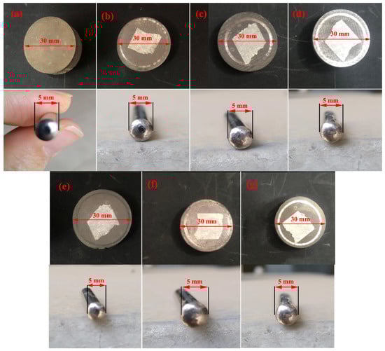 Figure 10f shows the adhesive wear clearly. Adhesive wear in this sample may be due to the completely uneven surface of the fabricated sample or the surface mechanical engagement during the test. In this case, due to high temperature induced by friction, a thin piece or sheet from the surface of the material sticks to the other surface, which leads to engagement and stress at several different points. This leads to plastic deformation (