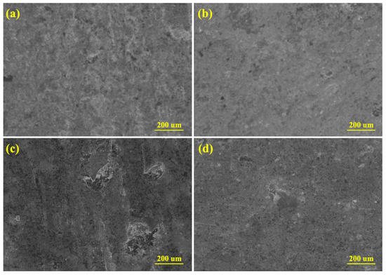 Figure 10b,c, show convexity and concavity of the surface around the SiC particles, which is caused by abrasive wear and causes the edge and projection of the SiC particles on the surface. As the SiC particles protrude, the wear rate and COF decrease due to greater contact of the pin with the ceramic particles, until the SiC particles are plucked off from the matrix and this process is repeated in a cyclic manner.