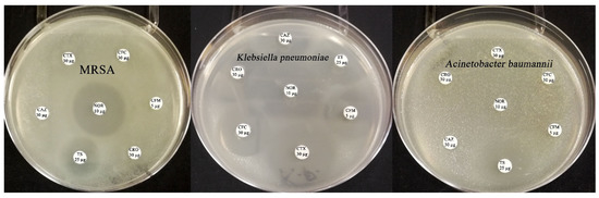 - Clinical and Laboratory Standards. Performance Standards for Antimicrobial Disk Susceptibility Tests; Approved Standard M2-A8; Clinical and Laboratory Standards Institute (CLSI): Wayne, PA, USA, 2003. [Google Scholar]