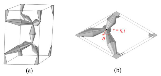 The connection points P1 and P2 can move in horizontal directions in addition to the vertical direction. If the two connection points move in the same direction, the primitive cell is mirror symmetric in the vertical direction. The primitive cell is shown in Figure 6. The movement of P1 and P2 can be determined by ηh and θ, where the displacement of the movement is r = ηh l.