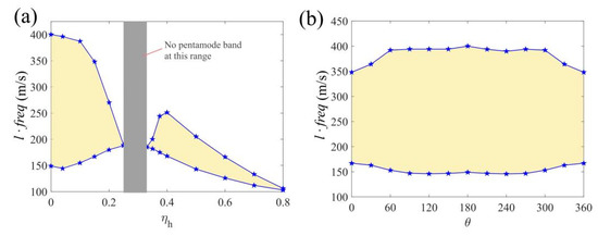 The relationship of (a) ηh and (b) θ on pentamode bands.