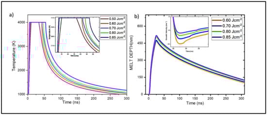 - Singh, R.K.; Narayan, J. A novel method for simulating laser-solid interactions in semiconductors and layered structures. Mater. Sci. Eng. B 1989, 3, 217–230. [Google Scholar] [CrossRef]
