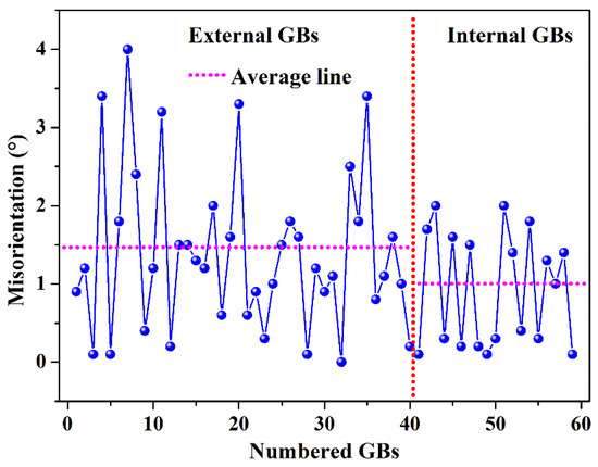 - Liu, Y.H.; Liu, S.F.; Fan, H.Y.; Deng, C.; Cao, L.F.; Ni, H.T.; Liu, Q. Orientation-dependent grain boundary characteristics in tantalum upon the change of strain path. Mater. Charact. 2019, 154, 277–284. [Google Scholar] [CrossRef]