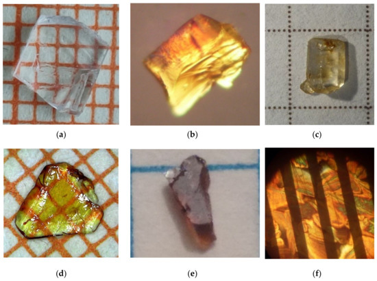 - Begum, S.N.; Sankar, U. Studies on Optical and Mechanical Properties of Salicylic acid Admixtured TGS Single Crystals. Available online: http://www.ijtrd.com/papers/IJTRD15969.pdf (accessed on 8 April 2022).