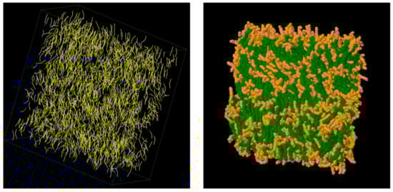 - Wilson, M.; Allen, M. Computer simulation study of liquid crystal formation in a semi-flexible system of linked hard spheres. Mol. Phys. 1993, 80, 277–295. [Google Scholar] [CrossRef]