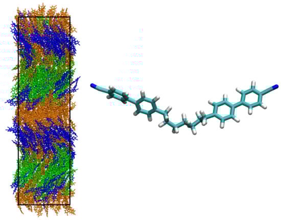 Nonetheless, considerable progress has been made in producing high-quality atomistic models that can represent structurally simpler liquid crystal phases and predict transition temperatures within 5–10 C []. The key to the successes has been improvements in the accuracy of molecular force fields.