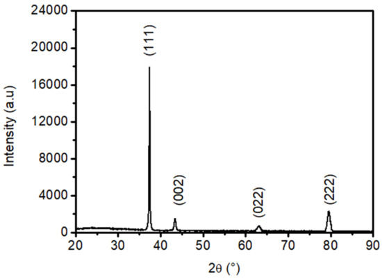 XRD measurements showed a typical pattern of NiO sprayed thin films (see, Figure 1). We located the well-defined NiO peaks (111), (002), (022), and (222). These latest orientations correspond to the cubic structure NiO according to the JCPDS card 040-835 [59,60]. Indeed, the NiO film grown here is highly oriented following the (111) direction. Therefore, the NiO films grown here have a cubic structure along with the (111) orientation [59,60].