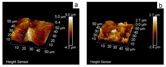 AFM images of the treated samples: (a) AO, (b) 0.02 mol/L CA.
