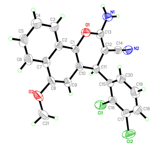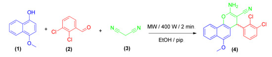 3.2. Synthesis of 2-Amino-4-(2,3-Dichlorophenyl)-6-Methoxy-4H-Benzo[h]chromene-3-Carbonitrile (4)