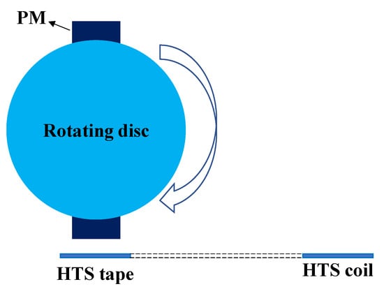 HTS rotary flux pumps, or so-called HTS dynamos, firstly proposed by Hoffman et al. [57], employ one or multiple permanent magnets (PMs) mounted on a rotating disc as shown in Figure 4. The rotation of disc causes spatially varying magnetic fields and forms the travelling wave required by the flux pumps.
