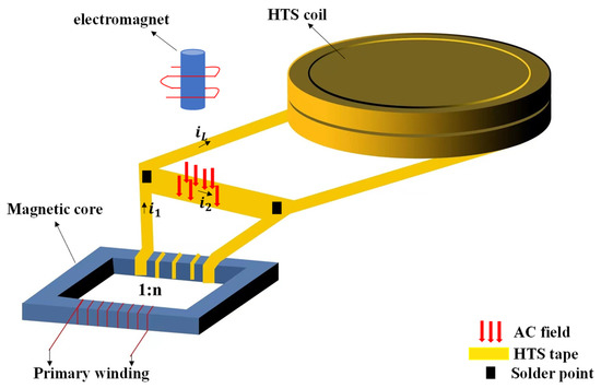 where denotes the currents stimulated (by the induced voltage across the HTS tapes) in the coils and hence also flowing through the HTS tapes as a complete circuit loop.