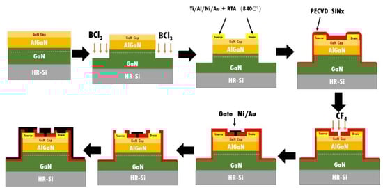 Schematic process flow of regular AlGaN/GaN HEMT.