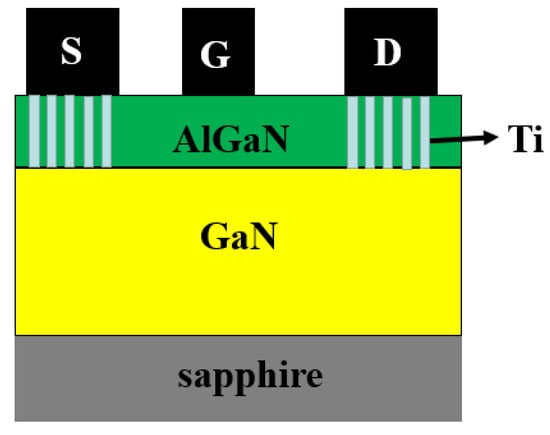 Schematic structure of AlGaN/GaN HEMT with holes etching in the ohmic region.
