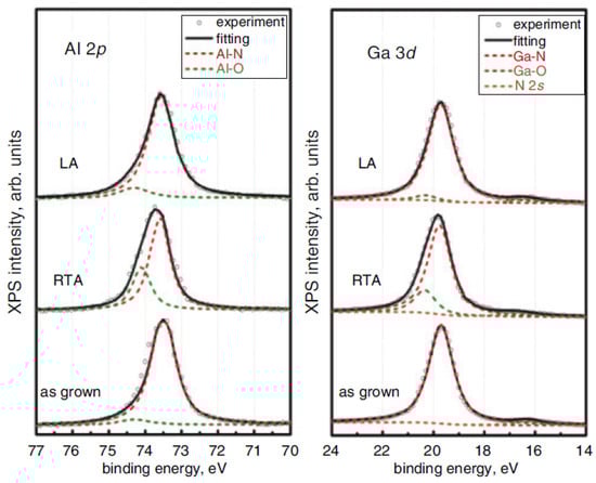 XPS core-level spectra of AlGaN surface as grown, after RTA and after the LA method. Reprinted with permission from Ref. [96]. Copyright 2019, Wiley.