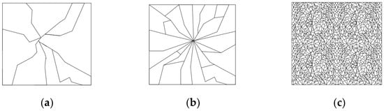 Breakage pattern for each type of glass: (a) annealed glass/float glass; (b) heat-strengthened glass; (c) thermally toughened glass [2].