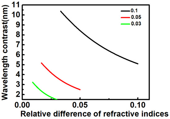 λcontrast) decreases with the increase of the relative difference between the refractive indices (Δ