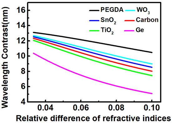 λcontrast) increases with the reduction of the refractive index of the matrix. In other words, wavelength range contrast (Δ
