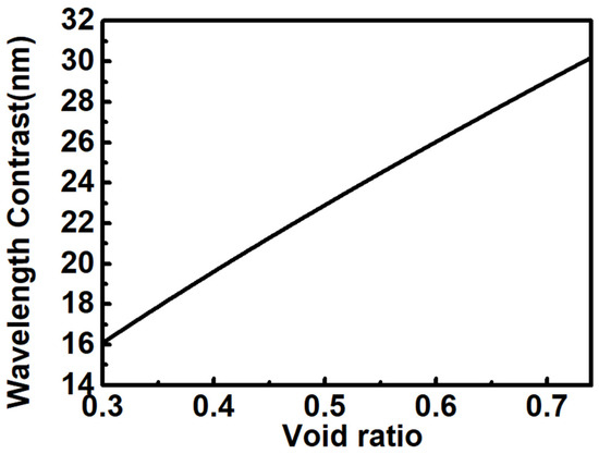 λcontrast) and void ratio. In this discussion, two substances with refractive indices of 1.33 and 1.43 were selected. The obtained wavelength response range (Δ