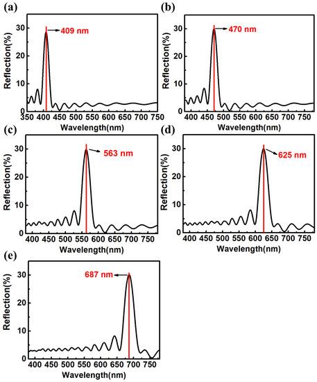 According to Bragg–Snell’s law, the central reflected wavelength of the IO structured PC sensors can be estimated by Equation (1).