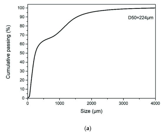 The particle size distribution curve of (a) Contaminated Soil, and (b) ground granulated blast furnace slag.