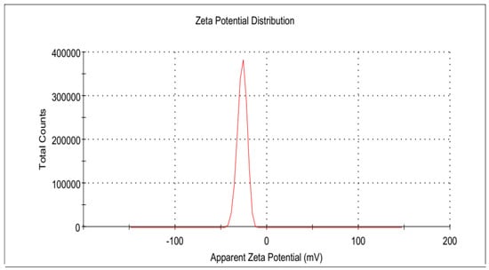The Er-ZnONP colloids showed stability in the neutral aqueous medium (di-distilled water) because they possessed a Zeta potential value of −30.7 mV, as shown in Figure 4.