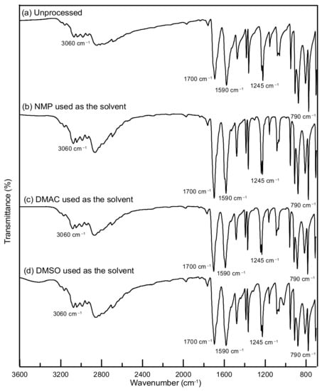 Comparison of FTIR spectrum of unprocessed and SAS-processed allopurinol (a) unprocessed sample, (b) SAS-processed sample using NMP as the solvent, (c) SAS-processed sample using DMAC as the solvent and (d) SAS-processed sample using DMSO as the solvent.
