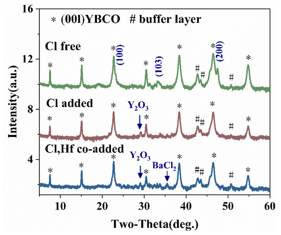 - Dou, W.Z.; Liu, Z.Y.; Yu, J.; Yang, F.; Bai, C.Y.; Lu, Y.M.; Guo, Y.Q.; Cai, C.B. Phase Transition During Sintering Process Before Nucleation of TFA-MOD YBa2Cu3O7−δ Films. In Proceedings of the 2015 IEEE International Conference on Applied Superconductivity and Electromagnetic Devices (ASEMD), Shanghai, China, 20 November 2015; pp. 480–481. [Google Scholar]