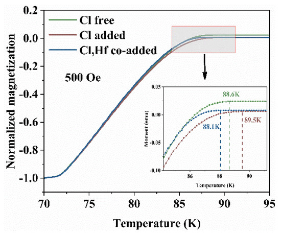 - Motoki, T.; Ikeda, S.; Nakamura, S.I.; Honda, G.; Nagaishi, T.; Doi, T.; Shimoyama, J.I. Greatly enhanced flux pinning properties of fluorine-free metal–organic decomposition YBCO films by co-addition of halogens (Cl, Br) and metals (Zr, Sn, Hf). Supercond. Sci. Technol. 2018, 31, 044004. [Google Scholar] [CrossRef]
