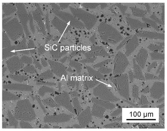 Silicon carbide particle reinforced aluminum matrix composites (SiCp/Al composites), which are composed of silicon carbide particles and aluminum alloy matrix, are typical metal matrix composites [1,2,3,4]. Due to the advantages of high specific strength, good wear resistance, and a low thermal expansion coefficient, SiCp/Al composites have been widely used in electronics, aerospace, and other fields [5,6,7]. However, SiCp/Al composites have poor machinability and are difficult to use in manufacturing large or complex components [8]. Assembling modular SiCp/Al composite parts by welding can break through the limitations of component size and structure, thus significantly broadening their application and achieving huge economic benefits [9,10]. However, due to the huge difference in physical and chemical properties between the SiC particle and the Al matrix, the welding of SiCp/Al composites is difficult [11]. At present, this problem has not been overcome and has become one of the main obstacles to the further application of SiCp/Al composites.