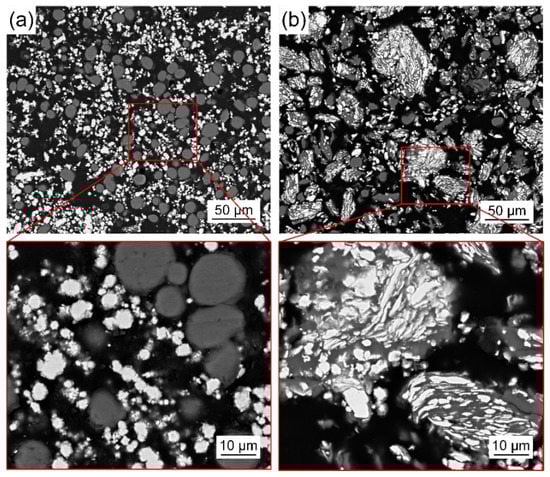 The volume fraction of the SiC particles in the SiCp/Al composites was 50%. The matrix of the SiCp/Al composites was the 6061 aluminum alloy. Figure 1 shows the microstructure of the SiCp/Al composites. Before the exothermic bonding, the SiCp/Al composites were cut into 5 mm × 5 mm × 4 mm and 12 mm × 8 mm × 2 mm specimens. The bonding surfaces were polished using the diamond sanding discs up to grit 1000. Then, the SiCp/Al composite specimens were cleaned in acetone for 15 min with the assistance of an ultrasonic instrument.