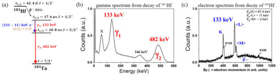 - Wu, S.-C. Nuclear Data Sheets for A = 181. Nucl. Data Sheets 2005, 106, 367–600. [Google Scholar] [CrossRef]