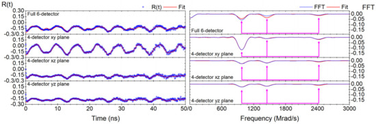 | Four-detector y-z plane | 761.5 (6) | 0.544 (2) | 141.6 ± 0.1 a ± 3.0 b | 0.46 (8) | 0.96 | 29.5 (7) | 46.3 (4) | 0.300 (6) | −0.1843 (4) |