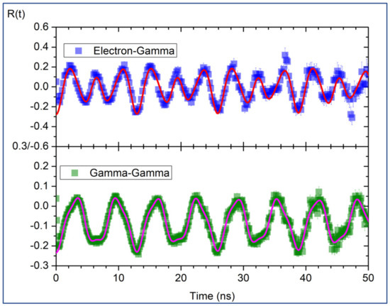 - Schatz, G.; Weidinger, A. Chapter 2: “Electromagnetic Properties and Nuclear Decay. Chapter 3: “Hyperfine Interactions. Chapter 5: “Perturbed γ−γ Angular Correlation (PAC). In Nuclear Condensed Matter Physics: Nuclear Methods and Applications; Wiley: Chichester, UK, 1996; pp. 3–32, 63–99. ISBN 0471954799. [Google Scholar]