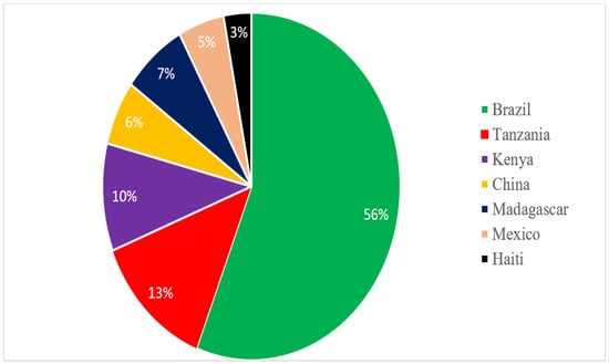 Fiber production was 281,000 tons worldwide in 2013, with Brazil generating 150,584 tons. Tanzania (34,875 tons per year), Kenya (28,000 tons per year), Madagascar (18,950 tons per year), China (16,500 tons per year), Mexico (12,000 tons per year), and Haiti (9000 tons per year) all produce sisal. It is economically possible for the country’s underdeveloped northeast religion, which supports roughly 800,000 people. Sisal ranks as sixth among fiber plants, accounting for 2% of the global plant fiber output [30]. Figure 1 shows the worldwide production of sisal plants.