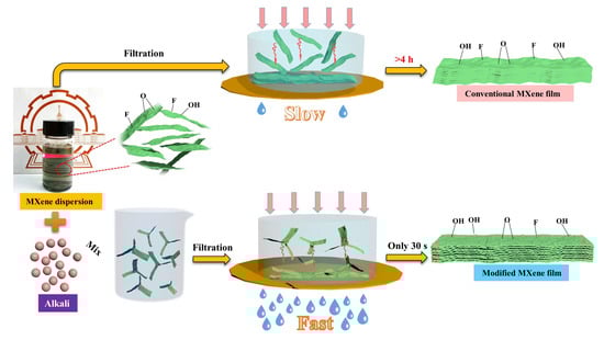 - Wang, J.; Kang, H.; Ma, H.; Liu, Y.; Xie, Z.; Wang, Y.; Fan, Z. Super-Fast Fabrication of MXene Film through a Combination of Ion Induced Gelation and Vacuum-Assisted Filtration. Eng. Sci. 2021, 15, 57–66. [Google Scholar] [CrossRef]