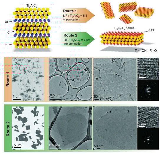 Preparation and characterization of MXene flakes produced by various routes. Reproduced from [48], with the permission of Wiley-VCH.