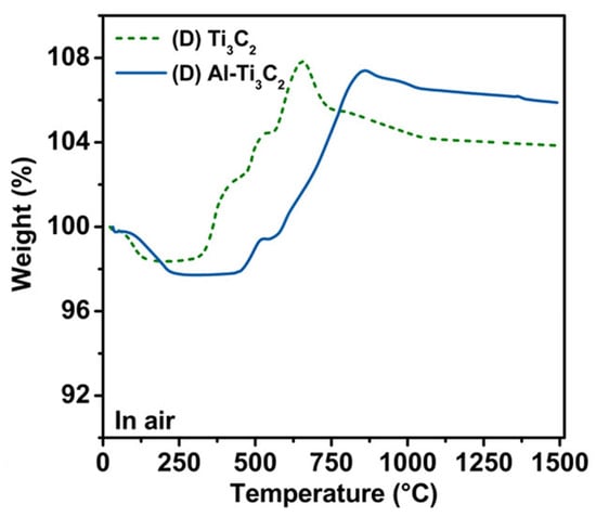 Thermogravimetric analysis of V-MXene films with high oxidation resistance (solid lines). Reproduced from [3], with the permission of the American Chemical Society.