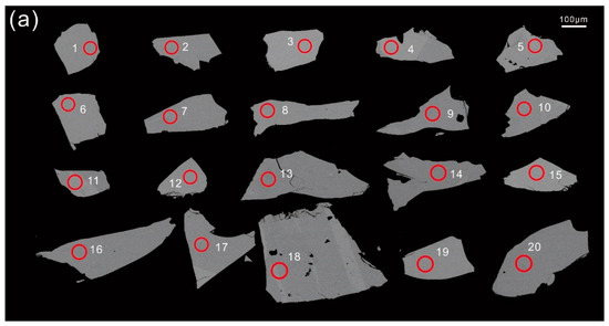 The titanite grains were mounted in epoxy, polished and examined using BSE images to select suitable targets for in situ analysis. The TESCAN field emission scanning electron microscope (MIRA 3LMH) was used to capture BSE images with the following setting: acceleration voltage: 7 kV; absorption current: 1.2 Na; scan time: 80 s.