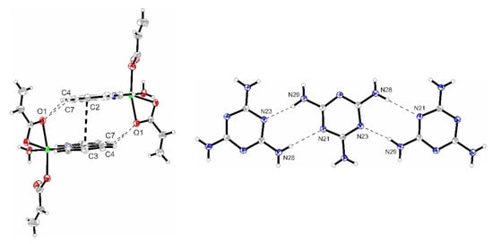 Beside these, the melaminium cation outer of the coordination sphere [12,13,14,15,16] or uncoordinated MA involved in the hydrogen bonds network [12,17] were identified in several complexes.