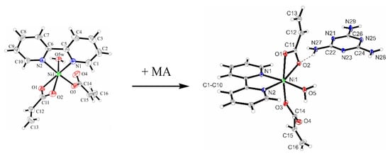 Melamine was purchased from Fluka (Saint-Louis, MO, USA) as reagent grade and has been used without further purification. [Ni(bpy)(acr)2(H2O)] was synthesized as previously described [27].