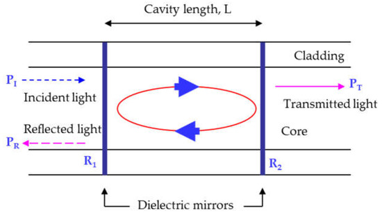 The Fabry–Perot interferometer constructed by Charles Fabry and Alfred Perot in 1898 plays an important role in modern optics. Over the years, this concept has found a broad spectrum of applications. In addition to being a spectroscopic device with extremely high resolving power, it can serve as a basic laser resonant cavity or an optical oscillator. With the development of optical fiber, this interferometer is also utilized as a highly sensitive sensor head. A schematic diagram of a single FFPI is shown in Figure 1.