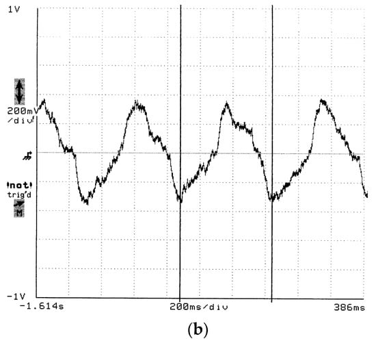 Oscilloscope traces showing the response of a sensor FFPI on a Styrofoam sheet: (a) disturbed signal applied to the speaker for modulation; (b) extracted signal from the optical receiver.